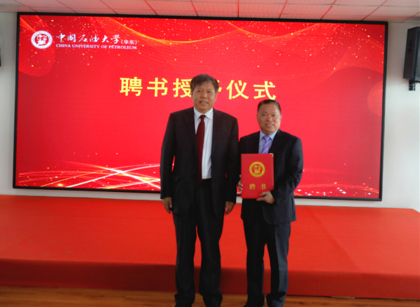 隨后,郝芳校長(zhǎng)代表中國(guó)石油大學(xué)(華東)向我司董事長(zhǎng)張新功頒發(fā)兼職教授聘任證書(shū)。