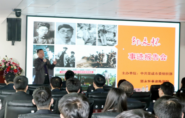 3月8日上午,榮成市委組織部郭永懷先生事跡報告宣講團來我司舉行宣講活動,講述郭永懷先進事跡,激勵科研人員愛國奮斗。新區(qū)工信局副局長李云峰、我司董事長張新功及公司各級管理人員、全體黨員等百余人共同聆聽了此次宣講。