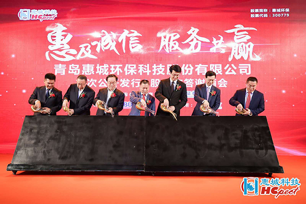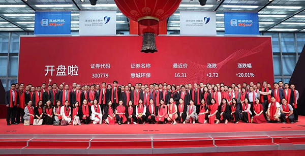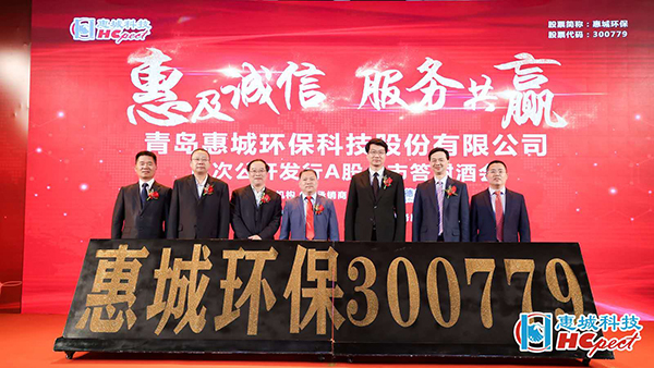 5月22日上午,青島惠城環(huán)??萍脊煞萦邢薰旧鲜袃x式在深圳證券交易所東門8樓大廳正式啟動(dòng)。青島市地方金融監(jiān)管局副局長(zhǎng)王偉光、青島惠城環(huán)保科技股份有限公司董事長(zhǎng)張新功、中德證券有限責(zé)任公司首席執(zhí)行官段濤致辭,隨著開(kāi)市寶鐘的敲響,惠城環(huán)保正式上市。