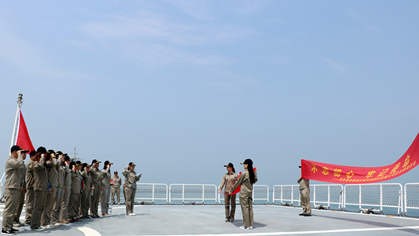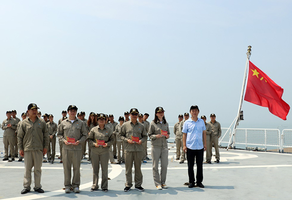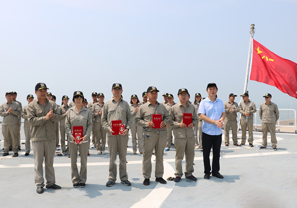 動(dòng)中,大家一起參觀了軍艦,并在軍艦上舉行了2018年度優(yōu)秀共產(chǎn)黨員表彰和黨員示范崗授牌表彰儀式。隨后,公司全體黨員重溫入黨誓詞,站在甲板上,大家舉起右手、握緊拳頭莊嚴(yán)宣誓,感悟今日黨員之責(zé)任,更加堅(jiān)定黨員的理想信念。