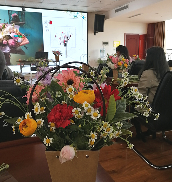 活動(dòng)特邀花藝講師進(jìn)行講解示范,在介紹了插花的造型要素和技巧手法后,講師通過(guò)現(xiàn)場(chǎng)演示,指導(dǎo)大家制作出一簇簇精美的花藝作品。一支支黃玫瑰、紫羅蘭、洋甘菊......經(jīng)過(guò)女同胞們的巧手修剪、色彩搭配,構(gòu)思細(xì)致地置入花籃,變的錯(cuò)落有致、賞心悅目,也寄托了大家對(duì)美的理解和對(duì)幸福的感悟。