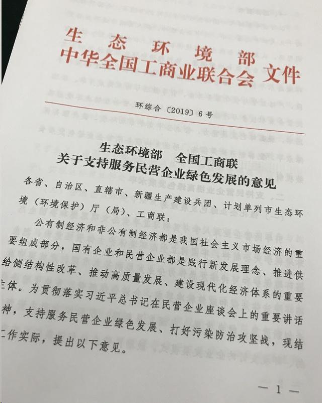 今天,生態(tài)環(huán)境部和全國(guó)工商聯(lián)簽署了“關(guān)于共同推進(jìn)民營(yíng)企業(yè)綠色發(fā)展 打好污染防治攻堅(jiān)戰(zhàn)”的合作協(xié)議,聯(lián)合出臺(tái)《關(guān)于支持服務(wù)民營(yíng)企業(yè)綠色發(fā)展的意見(jiàn)》,將通過(guò)健全市場(chǎng)準(zhǔn)入機(jī)制、完善環(huán)境法規(guī)標(biāo)準(zhǔn)、規(guī)范環(huán)境執(zhí)法行為、強(qiáng)化科技支持服務(wù)、完善環(huán)境經(jīng)濟(jì)政策措施,支持民營(yíng)企業(yè)提高綠色發(fā)展水平、營(yíng)造公平競(jìng)爭(zhēng)市場(chǎng)環(huán)境。
