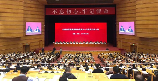 12月1日至12月2日,中國建筑金屬結(jié)構(gòu)協(xié)會《第十一次會員代表大會暨第十一屆理事會一次會議》在北京會議中心勝利召開。曹總作為中國建筑金屬結(jié)構(gòu)協(xié)會副會長應(yīng)邀出席此次大會并講話。圣春公司總經(jīng)理助理李京環(huán)陪同出席。