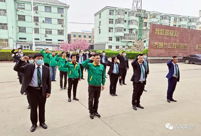 3月26日,春風(fēng)集團(tuán)如期開展新員工培訓(xùn)活動(dòng)。下午2點(diǎn),近30名新員工在集團(tuán)院內(nèi)集合宣誓,隨后進(jìn)入集團(tuán)匯展中心,了解集團(tuán)發(fā)展歷程及下屬子公司的榮譽(yù)產(chǎn)品。