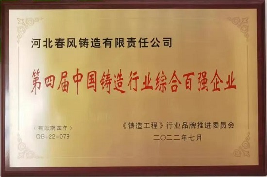 春風(fēng)集團隆春公司再次獲評全國百強鑄造企業(yè)