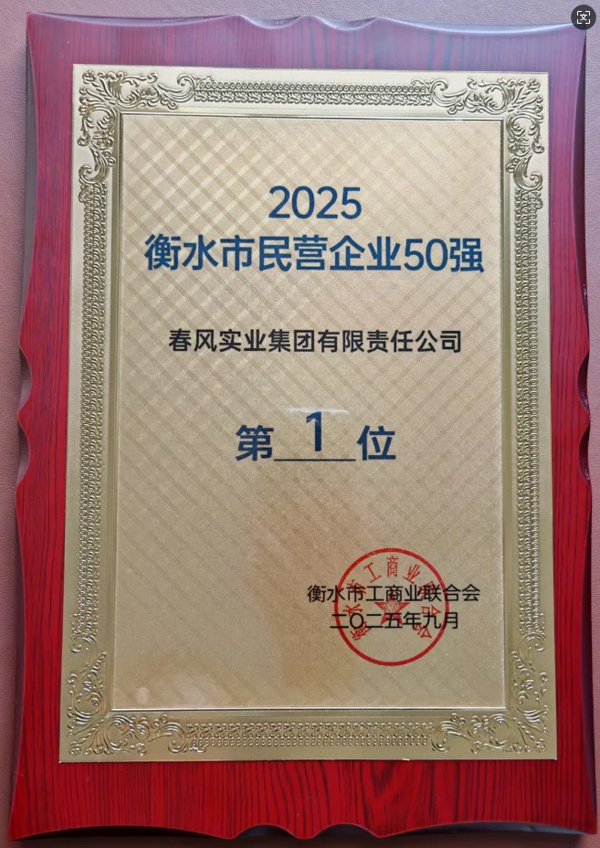 日前,市工商聯(lián)隆重發(fā)布2025衡水市民營企業(yè)50強(qiáng)榜單。春風(fēng)實(shí)業(yè)集團(tuán)榮獲“2025衡水市民營企業(yè)50強(qiáng)”第一位。